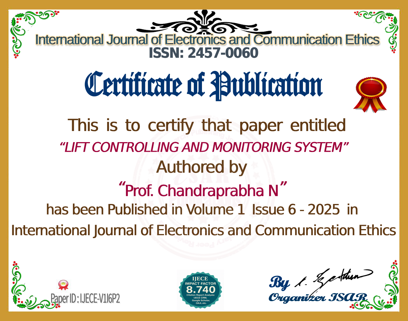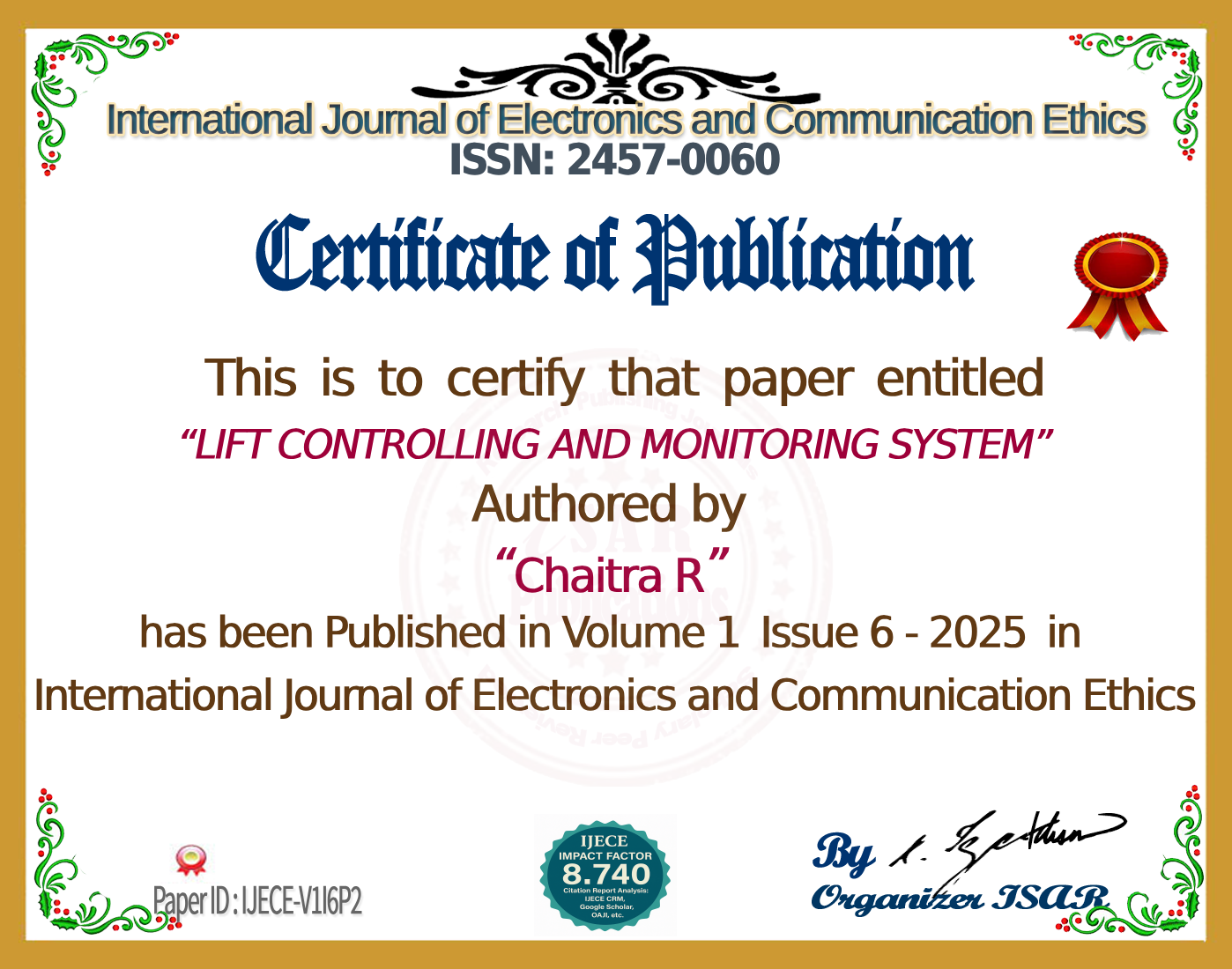 Lift controlling and Monitoring system | IJECE Volume 1 -Issue 6 | IJEEE-V1I6P2